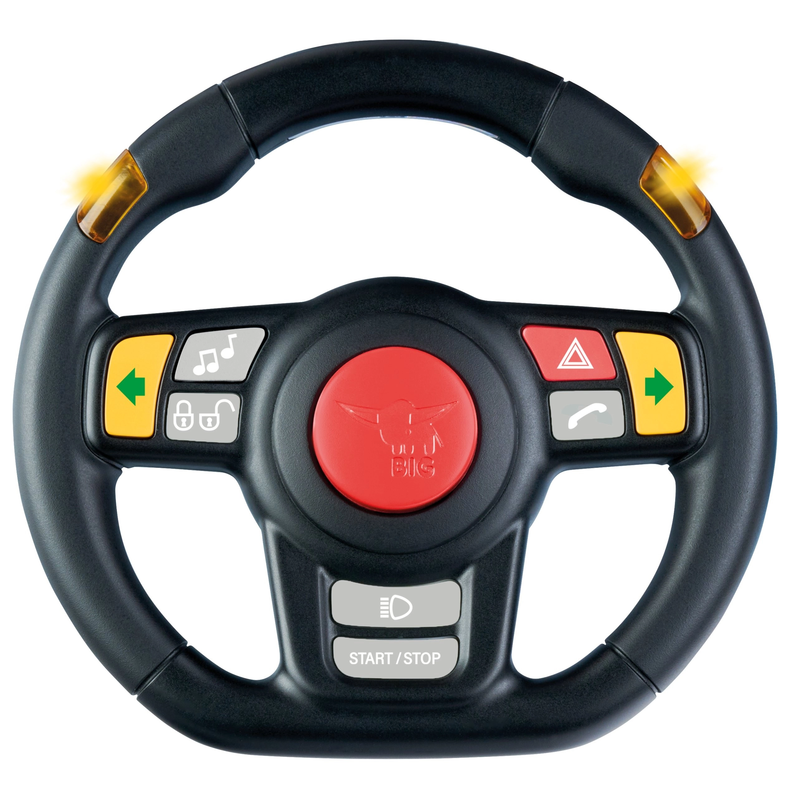 Volanul interactiv pentru BIG BOBBY CAR duce distracția copiilor la un nivel superior. Cei mici pot porni semnalizările LED, activa luminile de avarie și aprinde farurile frontale, în timp ce sunetele realiste ale motorului și claxonul susțin jocul de rol al unui șofer adevărat.