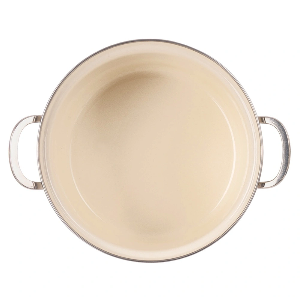 Emailul de calitate este igienic, durabil și potrivit chiar și pentru alergici. Marginea din inox și mânerele metalice sporesc durabilitatea și siguranța în utilizare.