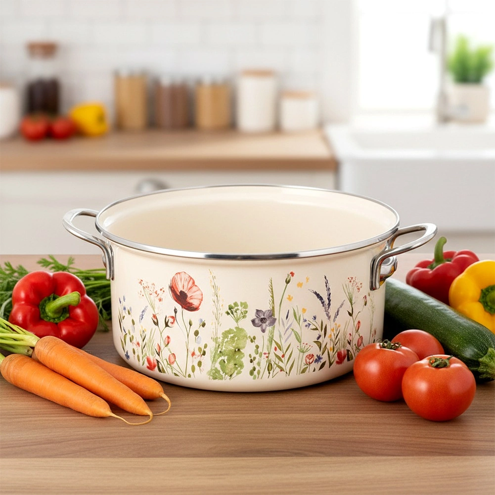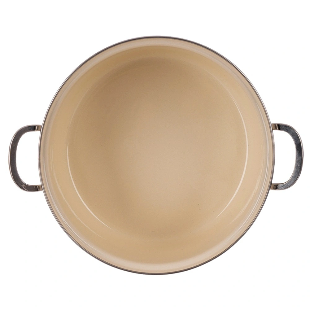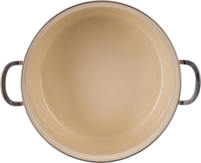 Smalțul neted este igienic și ușor de curățat, iar marginea din inox și mânerele solide asigură stabilitate și durată de viață îndelungată.