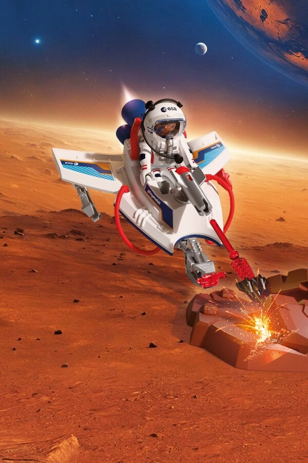 Pornește într-o expediție extraordinară pe Marte! Planorul aerodinamic PLAYMOBIL manevrează la mică distanță de suprafața planetei, scanează terenul și, cu ajutorul brațului rotativ de prindere, colectează mostre valoroase. Datorită lansatorului poți „despica” formațiunile stâncoase și dezvălui comori strălucitoare ascunse, stimulând imaginația copiilor și dezvoltând jocul creativ.