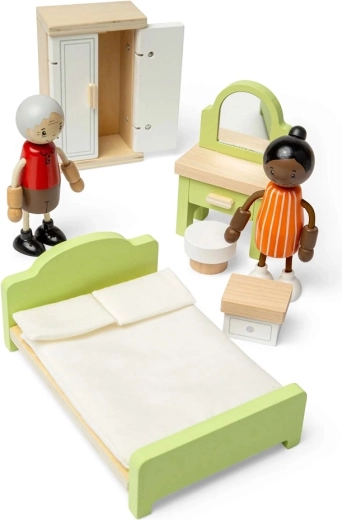Setul este fabricat din lemn certificat FSC®, are suprafețe netede și o construcție solidă pentru o durată lungă de viață. Susține dezvoltarea motricității fine, a abilităților sociale și a povestirii naturale. Se potrivește excelent ca accesoriu pentru majoritatea căsuțelor obișnuite pentru păpuși.