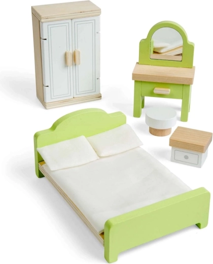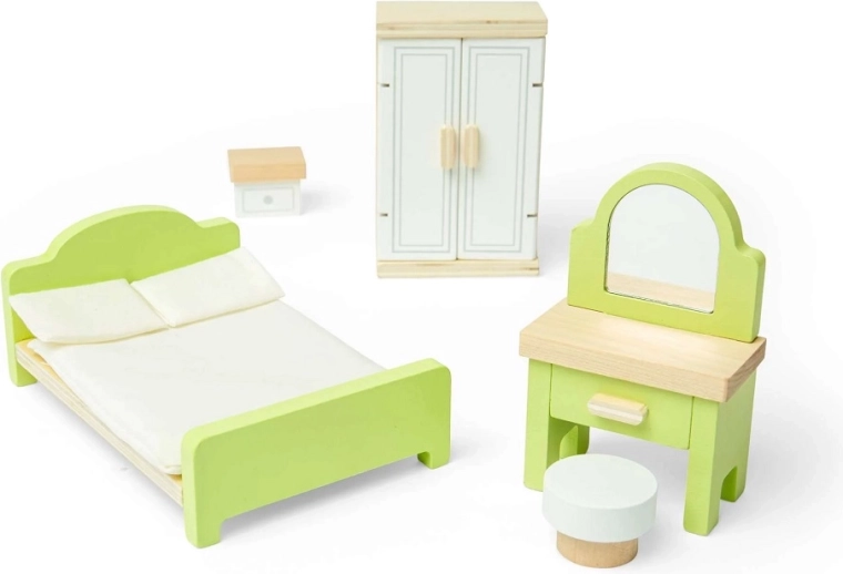 Creați un refugiu confortabil pentru păpuși cu elegantul set de dormitor din lemn BIGJIGS TOYS. Setul include pat, dulap, noptieră, măsuță de toaletă și taburet – toate din lemn FSC® de calitate. Susține imaginația, jocul de rol, empatia și imitarea ritualurilor de seară. Datorită ușilor și sertarelor funcționale și finisajului neted lăcuit, este ideal pentru joaca de zi cu zi și compatibil cu căsuțele BIGJIGS TOYS și alte căsuțe standard.
