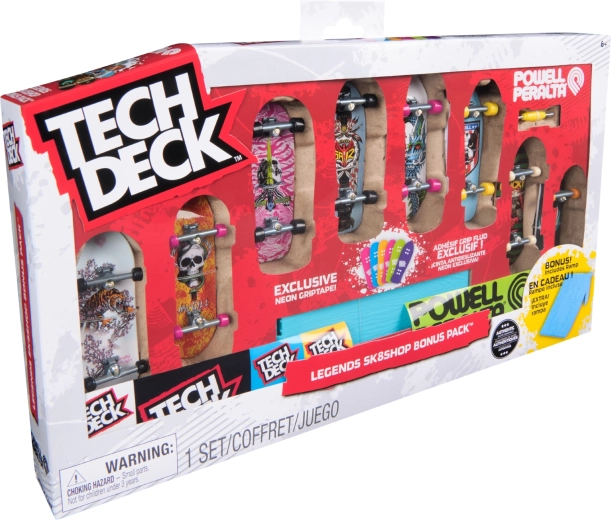 Descoperă lumea fingerboardingului cu brandul legendar TECH DECK, care inspiră fanii din întreaga lume de peste 20 de ani. Acest set exclusiv Legends Sk8shop Bonus Pack aduce 8 fingerboarduri gata de utilizare cu designuri colorate și o rampă neon pentru sărituri și trucuri.