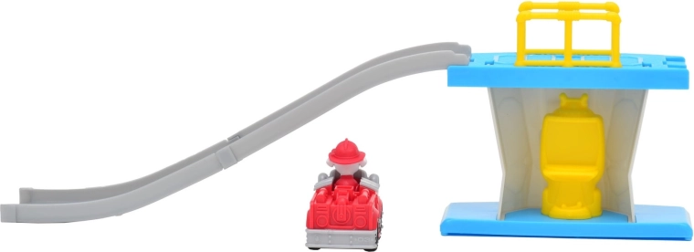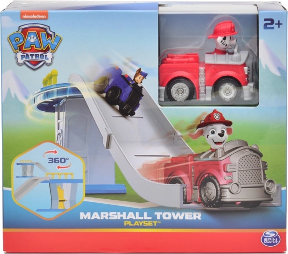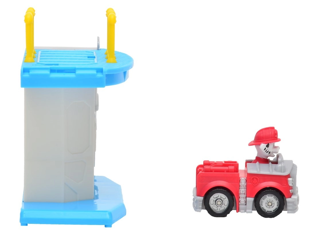 Acest set de joacă colorat, inspirat de îndrăgitul serial PAW PATROL, aduce distracție zilnică copiilor. Turnul cu rampă de lansare permite vehiculului să alunece lin în jos și să pornească într-o misiune de salvare. Include mini mașina de pompieri Marshall cu personajul cățelușului integrat pentru un start rapid în joc.