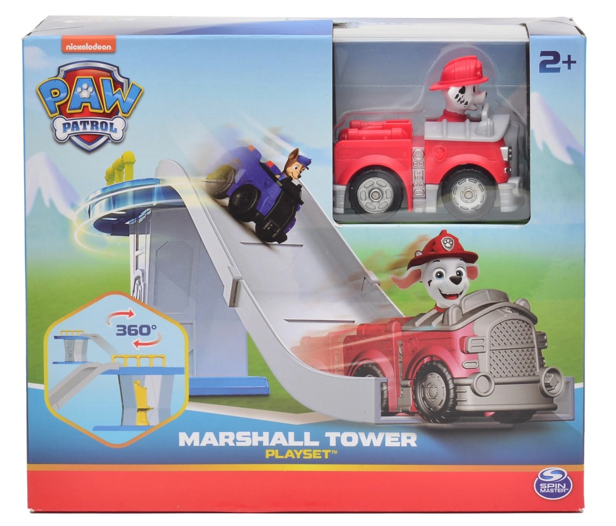 Turnul cu pistă permite vehiculului lui Marshall să alunece lin în jos – ideal pentru scenarii dinamice de salvare și joc repetat.