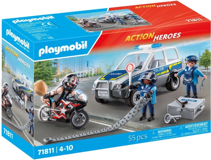 Setul de construcție plin de acțiune PLAYMOBIL City Heroes aduce o urmărire polițienească palpitantă cu motocicletă de serviciu, mașina hoțului și trei figurine articulate. Copiii se vor bucura de detalii realiste, numeroase accesorii și de crearea propriilor povești care dezvoltă imaginația, coordonarea și gândirea logică.