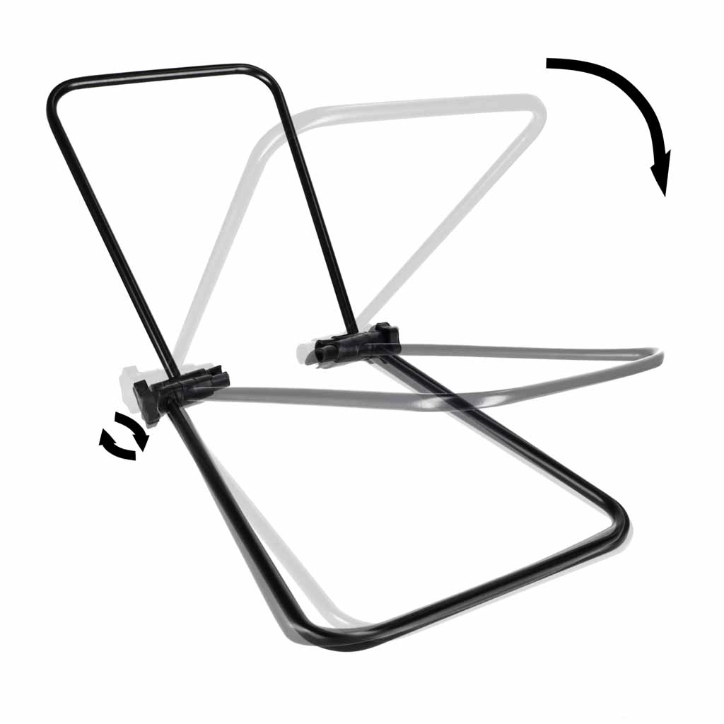 După utilizare, standul se pliază ușor la dimensiuni compacte, lucru pe care îl veți aprecia într-un apartament mic, garaj sau atelier. Designul universal se potrivește unei game largi de biciclete, iar suprafețele de contact din cauciuc protejează cadrul și butucul.