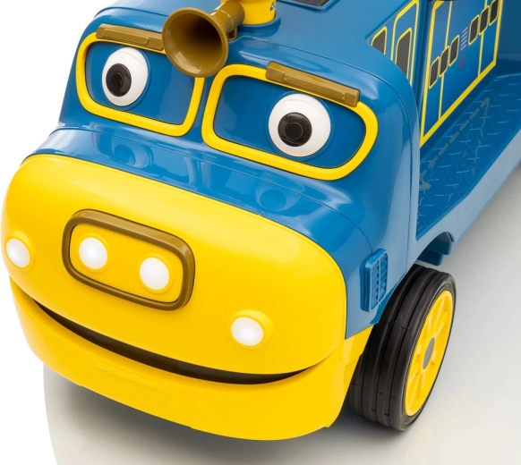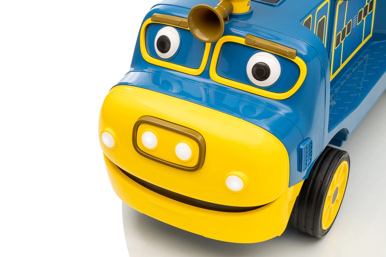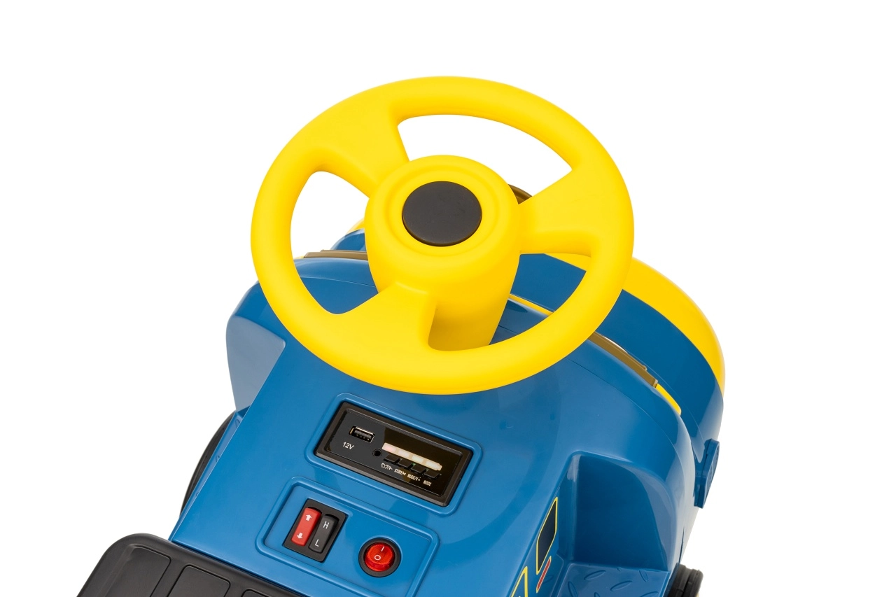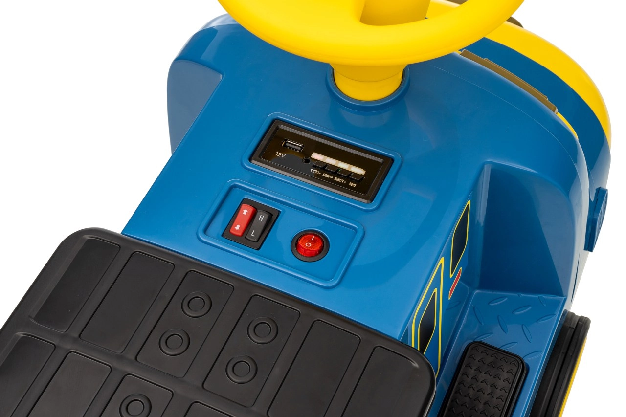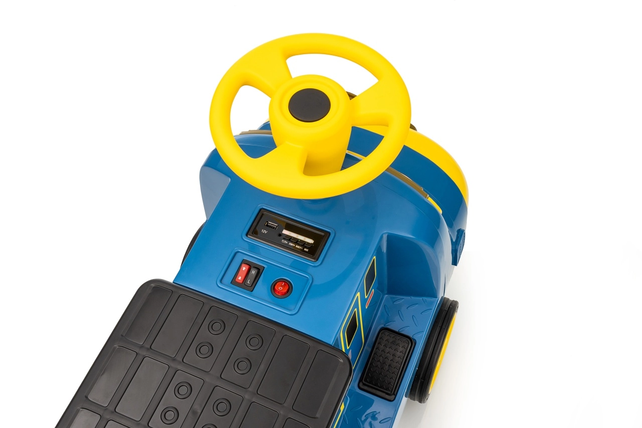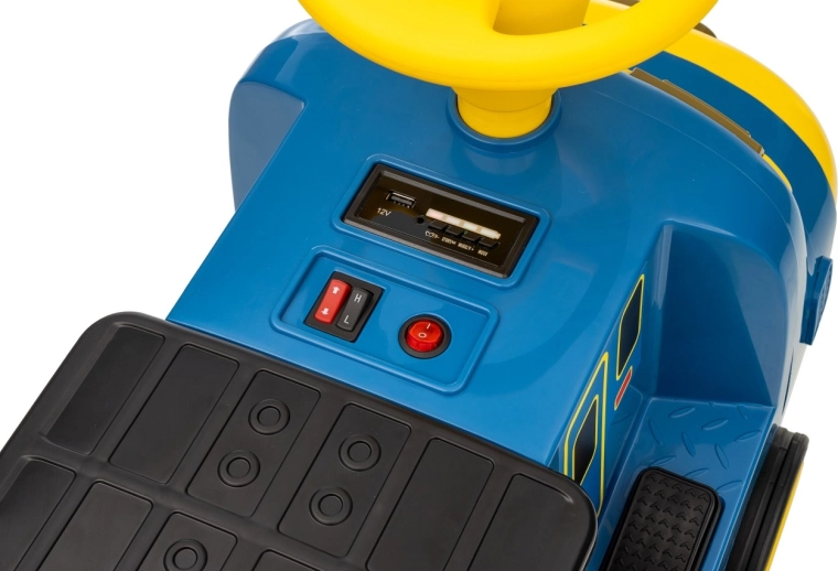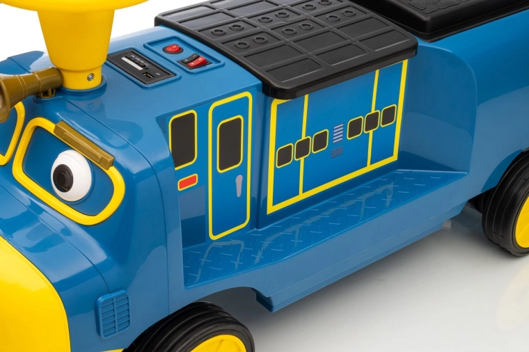 Locomotiva pentru copii STACYJKOWO îmbină distracția cu siguranța. Două motoare de 35 W și un acumulator de 12V/7Ah asigură o deplasare lină, iar pornirea lentă îi protejează pe copii de un demaraj brusc. Farurile LED frontale și designul expresiv, cu o față zâmbitoare, transformă fiecare cursă într-o aventură.