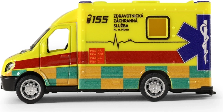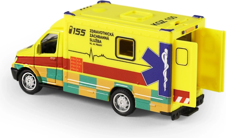 Salvarea este pe drum! O ambulanță metalică stilată, creată în colaborare cu Serviciul de Ambulanță al Municipiului București, îi va încânta pe toți micii salvatori. Datorită mecanismului pull-back, este suficient să tragi mașinuța înapoi, să o lași și misiunea plină de aventuri poate începe.