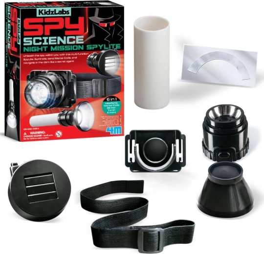 Descoperiți emoția misiunilor de spionaj cu setul 4M KidzLabs Spy misiune de noapte. SpyLite, compactă și multifuncțională, îi ghidează pe copii prin întuneric, le permite să trimită semnale secrete și le dezvoltă imaginația și abilitatea de colaborare.