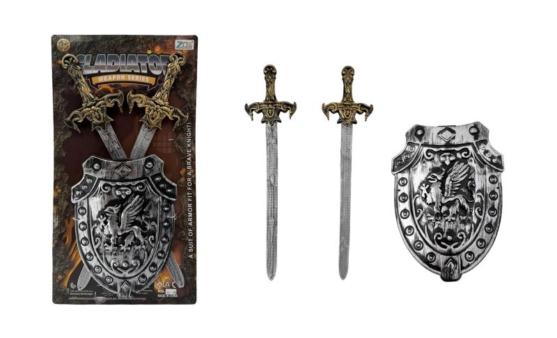 Datorită combinației dintre scutul de protecție și două piese de armament (de ex. săbii sau măciuci), copiii se vor bucura de ore întregi de distracție în bătălii imaginare. Setul este potrivit pentru joacă în interior și exterior, fie în grădină, pe terenul de joacă sau în camera copilului.