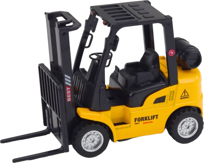 Acest stivuitor galben este un model bine gândit, inspirat din tehnica de depozit. Părțile metalice și din plastic oferă jucăriei durabilitate și un aspect realist, în timp ce mecanismul pull-back asigură o deplasare sprintenă – doar trage înapoi și eliberează.