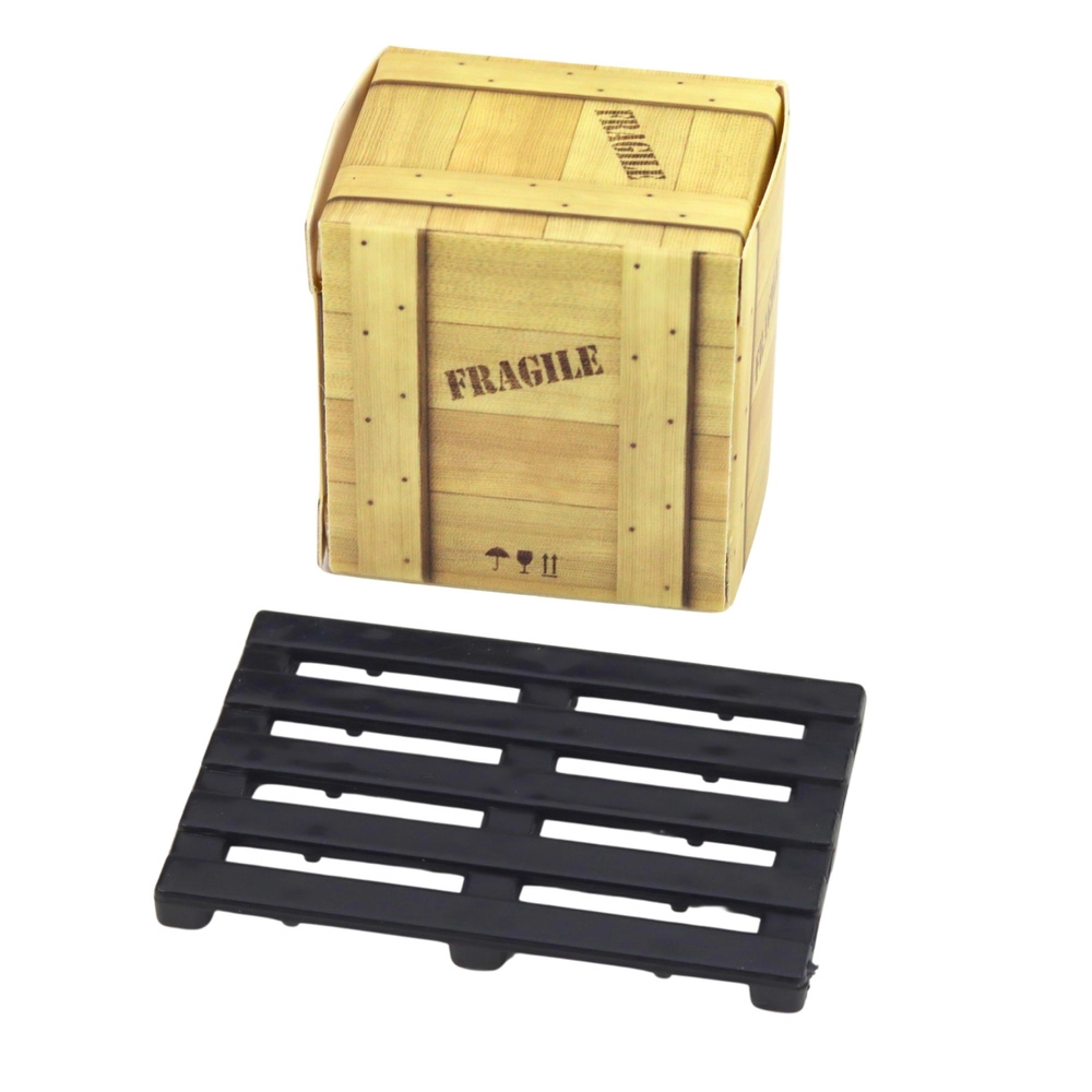 Ridică și coboară paleta cu lada ca într-un depozit real. Furcile funcționale susțin scenarii realiste și dezvoltarea motricității.