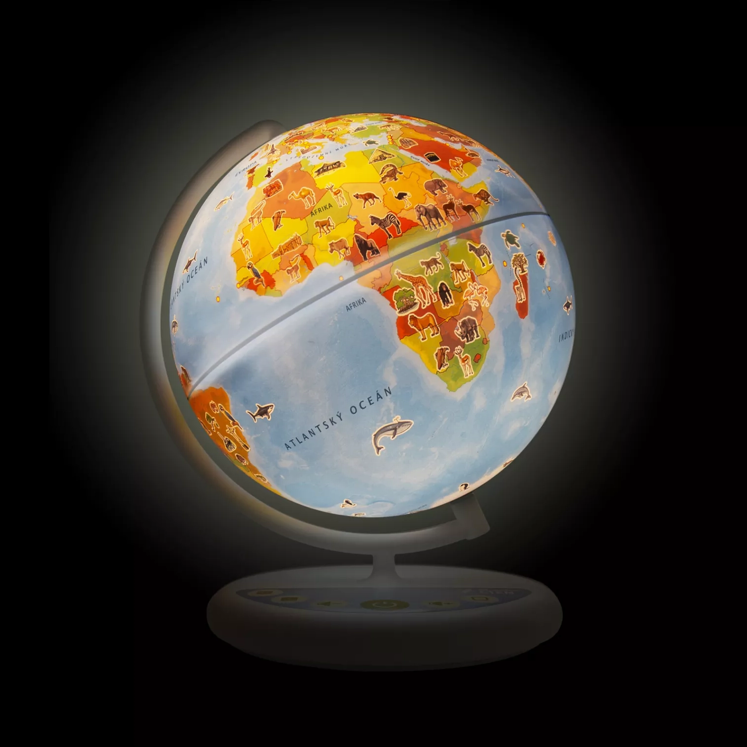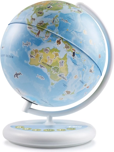 Călătorește prin toată planeta de acasă. Globul interactiv Junior din ediția Citiți fermecat le prezintă copiilor, pe înțelesul lor, continentele, țările, capitalele, mările și oceanele. Datorită stiloului electronic (se vinde separat), ei pot asculta curiozități despre animale exotice, plante uimitoare și monumente celebre. Icoanele clare, noua funcție de dublu clic și baza stabilă asigură control comod și învățare fără întreruperi inutile.