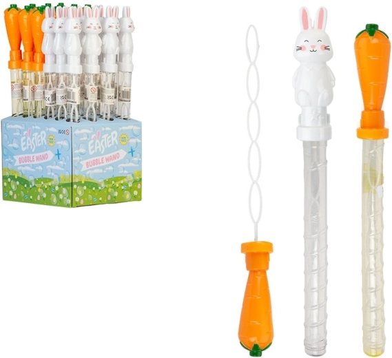 Înveselește sărbătorile de Paște cu un balon de săpun original, care îi va încânta pe cei mici și pe cei mari. Datorită lungimii de 37 cm, se ține confortabil în mână și permite crearea balonelor mari și transparente dintr-o singură mișcare. Designul în formă de iepuraș sau morcov adaugă o atmosferă jucăușă oricărei petreceri.