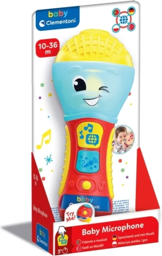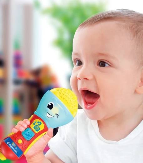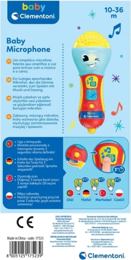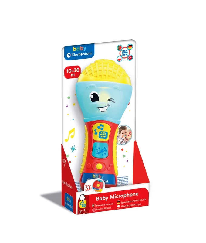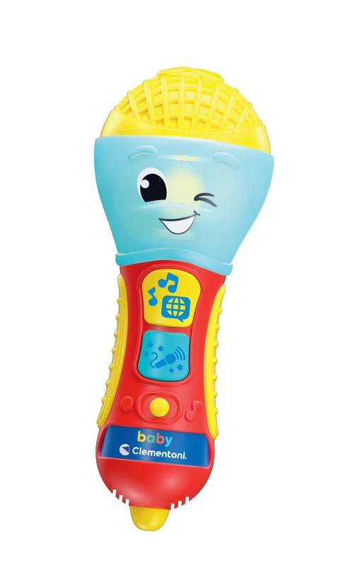 Microfonul vorbitor pentru copii CLEMENTONI este o jucărie interactivă grozavă pentru micii cântăreți și cântărețe. Prin cântecele, muzica de fundal și frazele simple, îi învață pe cei mici primele litere și cuvinte noi în 4 limbi. LED-ul colorat și 2 butoane funcționale oferă un spectacol luminos captivant și efecte amuzante.