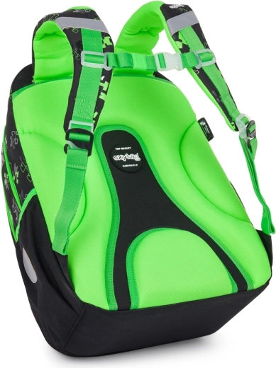 Setul școlar OXY NEXT Green Cubes este conceput pentru o purtare confortabilă și organizată a rechizitelor. Rucsacul de 21 l are spate modelat anatomic, bretele de umăr căptușite și reglabile și curea toracică pentru stabilitate la purtare. Datorită organizării bine gândite a buzunarelor, inclusiv suport pentru chei sau card școlar, toate obiectele vor fi mereu la locul lor.