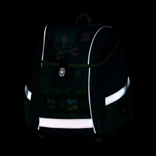 Echiparea practică include închidere magnetică ușor de folosit, compartimentator interior pentru depozitarea ordonată a manualelor și caietelor, buzunare laterale și frontale și elemente reflectorizante pentru vizibilitate sporită. Setul include săculeț pentru sport/pantofi cu închidere cu șnururi și penar cu un singur etaj cu două clapete, elastic pentru ustensile și folie transparentă pentru orarul școlar.