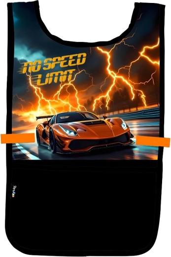 Șorț practic pentru copii, tip poncho, protejează hainele la pictură, creație și activități școlare. Datorită îmbrăcării peste cap și închiderii laterale cu capse, îmbrăcarea este ușoară și rapidă. În față are un buzunar spațios pentru pensule, creioane și mărunțișuri. Poliesterul 100% ușor se întreține simplu și se usucă rapid.