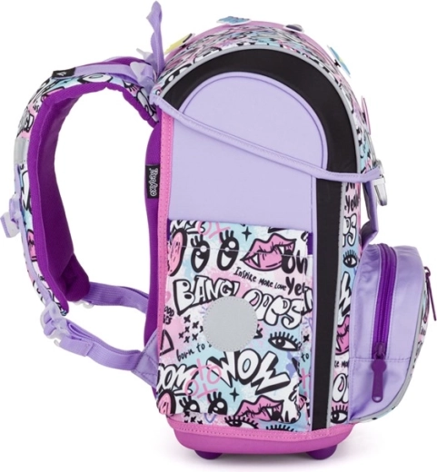 Setul școlar PREMIUM Funny Girl este conceput pentru a oferi copiilor confort maxim, siguranță și organizare clară încă din prima zi de școală. Panoul dorsal modelat anatomic, cu căptușeală respirabilă, și bretelele late, moi, asigură potrivirea corectă și distribuirea uniformă a sarcinii. Datorită fundului rigid și întăriturilor interne, ghiozdanul își menține forma stabilă și protejează conținutul.