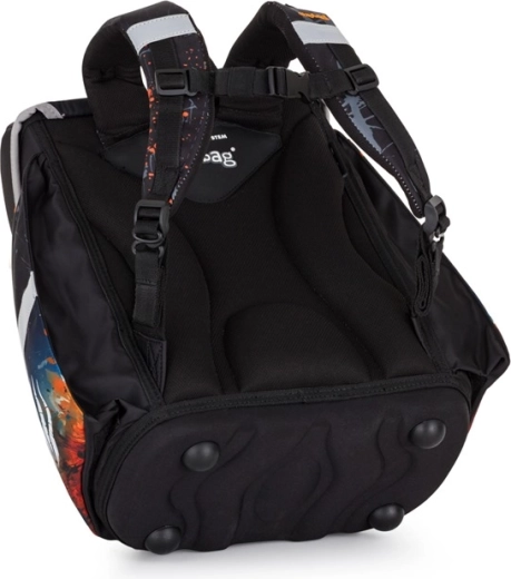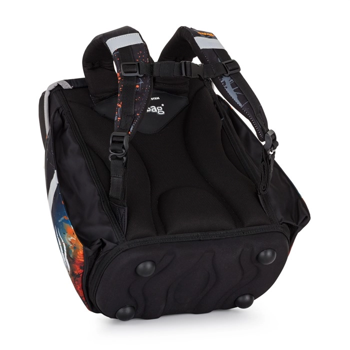 Spatele ergonomic, modelat din material respirabil, bretelele late, căptușite și curelele de piept și de tensionare asigură purtare confortabilă și distribuție uniformă a sarcinii. Elementele reflectorizante sporesc siguranța, iar închiderea magnetică permite deschiderea rapidă și ușoară. Rucsacul este recomandat pentru elevi de la înălțimea de 121 cm.