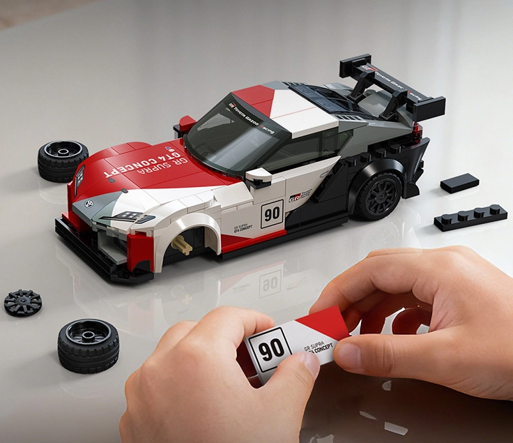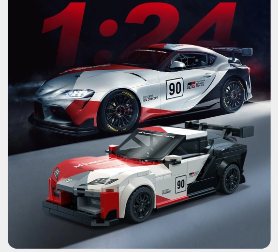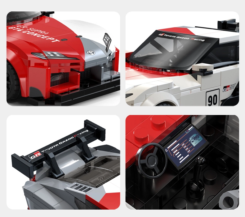 Modelul se remarcă prin bodykit-ul pronunțat, aripa spate mare și schema de culori de curse inspirată de TOYOTA GAZOO Racing. Ideal pentru fanii motorsportului și ai seturilor rapide de construcție.