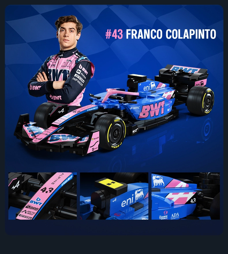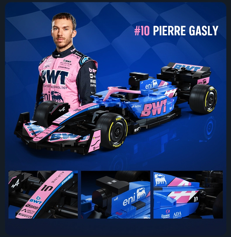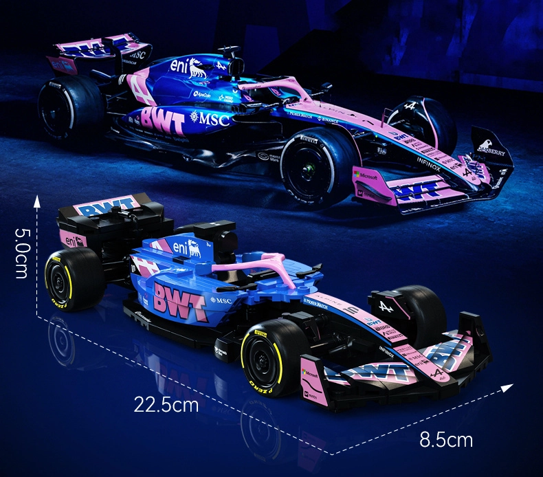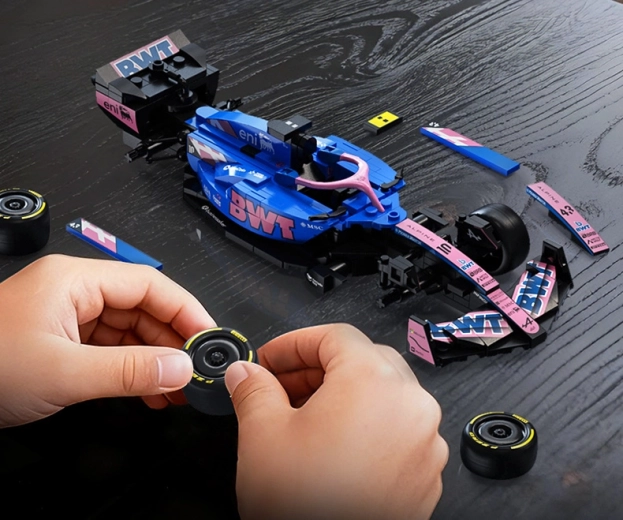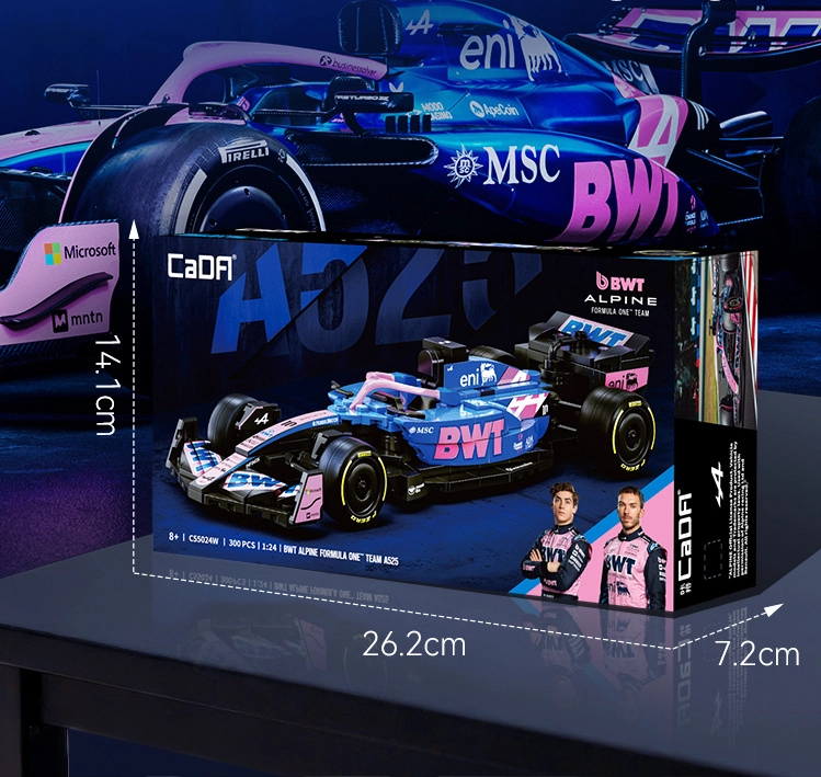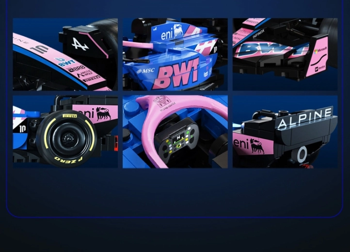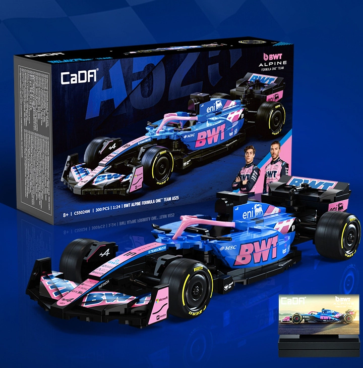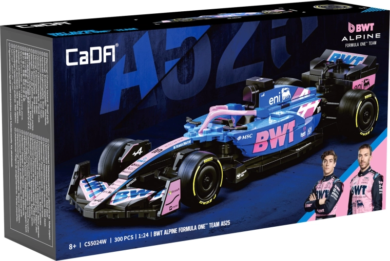 Acest set de design CaDA redă fidel silueta agresivă și culorile puternice ale monopostului BWT ALPINE F1 A525. Datorită detaliilor bogate, inscripțiilor de pe piese și construcției bine gândite, este ideal ca exponat stilat pentru vitrină și ca sursă de inspirație pentru joacă creativă.