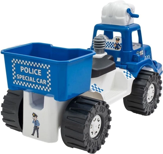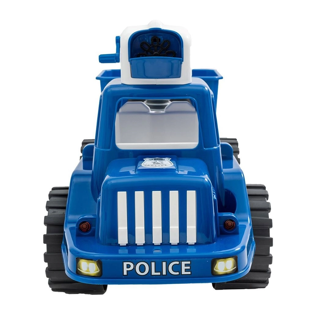 Sub șa se află o cutie practică pentru jucării sau soluția pentru bule, astfel încât micul polițist să aibă totul la îndemână chiar și în expedițiile mai lungi.