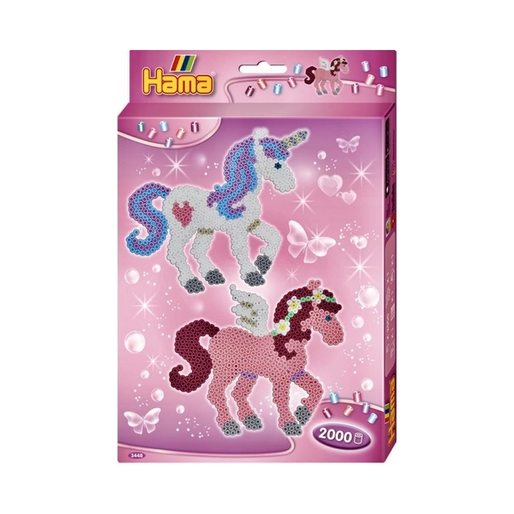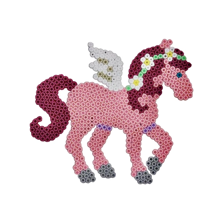 Acest set creativ oferă copiilor ore de distracție și, în același timp, le dezvoltă abilitățile. Datorită principiului simplu de aranjare a mărgelelor pe placă, urmat de călcare, copiii își pot crea propriile motive colorate cu căluți magici și alte forme.