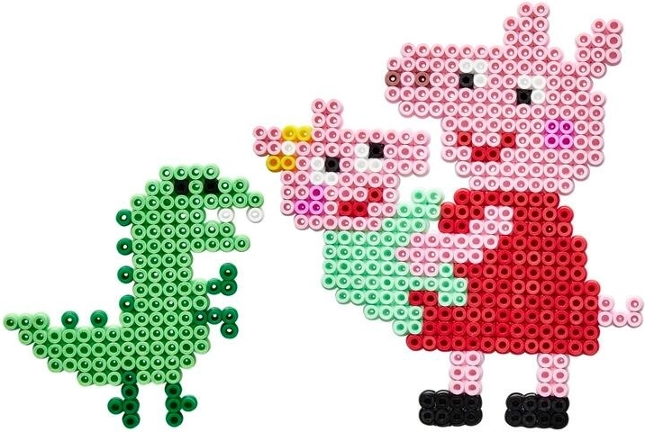 Cu cutia cadou Peppa Pig, copiii își pot realiza cu ușurință eroii din serialul preferat. Datorită accesoriilor complete, creația este intuitivă și sigură – este suficient să așezi mărgelele pe placa suport conform modelului și să fixezi motivul prin călcare.