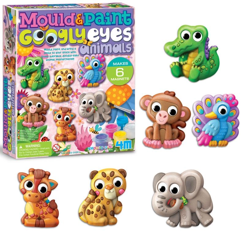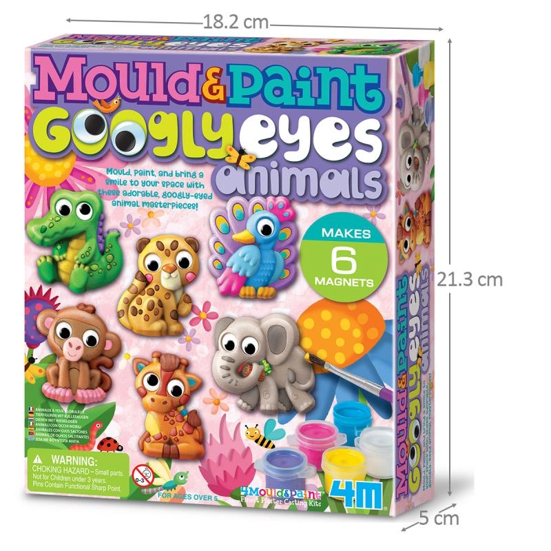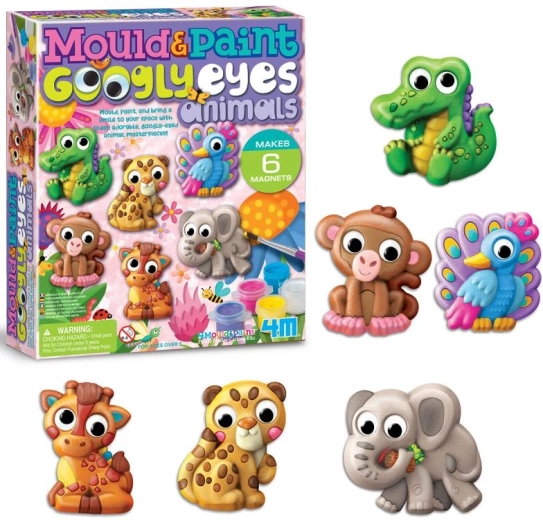 Copiii pot realiza până la 6 magneți originali – de exemplu un elefant, o maimuță, un păun, o girafă, un leopard sau un crocodil. Ochii mobili oferă fiecărei creații o expresie jucăușă, iar decorațiunile rezultate vor deveni un accesoriu îndrăgit în camera copiilor.