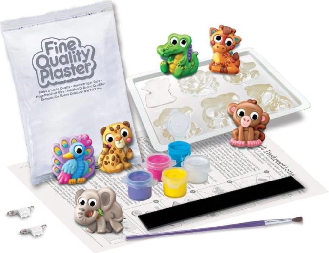 Acest set creativ combină turnarea din ipsos și pictura într-un proiect jucăuș care dezvoltă motricitatea fină, răbdarea și imaginația. Pachetul include forme cu animăluțe, ipsos, pensulă, vopsele și magneți pentru finalizarea ușoară a decorațiunilor.
