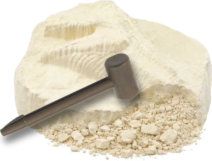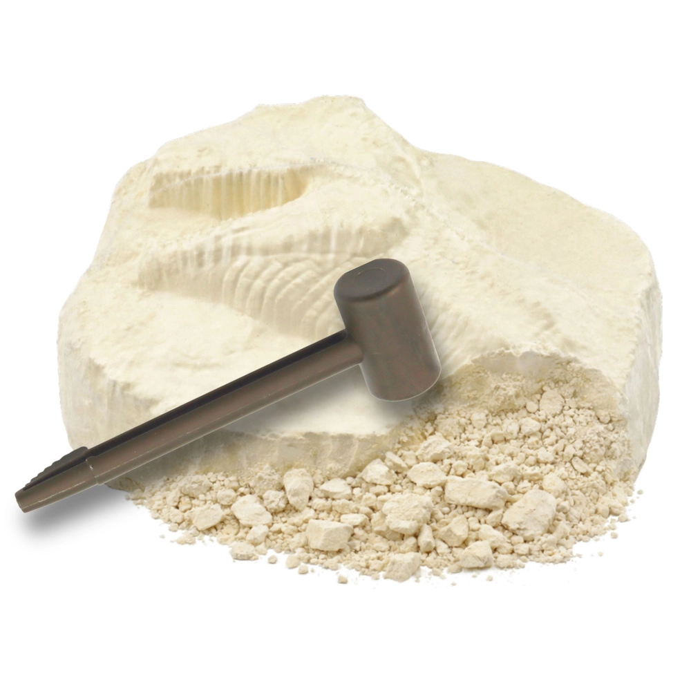 Devino un mic paleontolog și extrage din piatra „fosilă” propria ta descoperire de dinozaur. Pentru a lucra mai ușor, înmoaie piatra câteva minute în apă; astfel materialul se înmoaie și se îndepărtează mai ușor. O activitate sigură, jucăușă și educativă pentru copii, care aduce atât emoția descoperirii, cât și învățare practică.