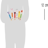 Acest set conține șase fluiere diverse, care, prin designul lor viu și motivele amuzante cu animale, atrag atenția fiecărui copil. Cu personaje încântătoare precum vaca sau cocoșul, copiii pot experimenta diferite tonuri și pot începe să descopere universul muzical. Manipulare ușoară datorită deplasării tijei din lemn, permițând redarea unor melodii variate. Nu sunt instrumente muzicale clasice, ci jucării minunate care dezvoltă talentul, simțul ritmului și al melodiei.