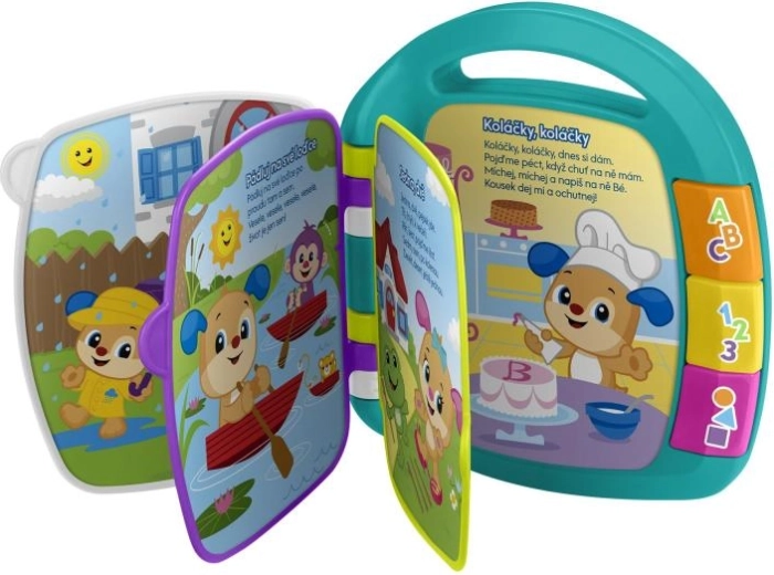 Cartea muzicală Fisher-Price Învățăm rime le aduce copiilor bucuria descoperirii și, în același timp, le susține dezvoltarea naturală. Paginile pline de ilustrații cu personajele Cățelușului și ale surioarei lui sunt însoțite de cântece pentru copii cunoscute și de melodii axate pe numărat, alfabet, forme și primele cuvinte. Elementele interactive și melodiile plăcute îi motivează pe copii să repete, să imite și să cânte.