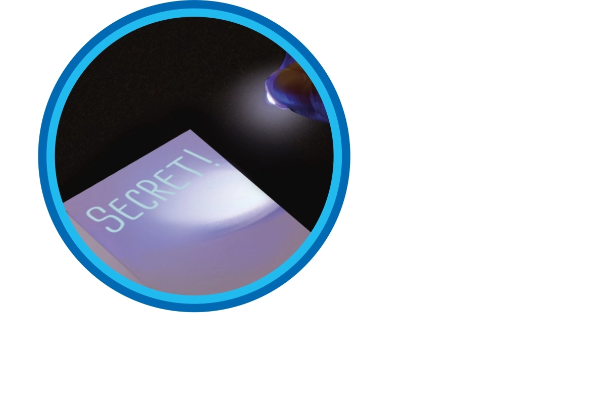 Cu acest set de spionaj, copiii devin maeștri ai misiunilor secrete. Mesajele scrise cu cerneală specială pot fi văzute doar sub lumină UV, astfel încât fiecare aventură va fi și mai palpitantă. Ochelarii cu vedere inversă le permit micilor spioni să observe discret ce se întâmplă în spatele lor.