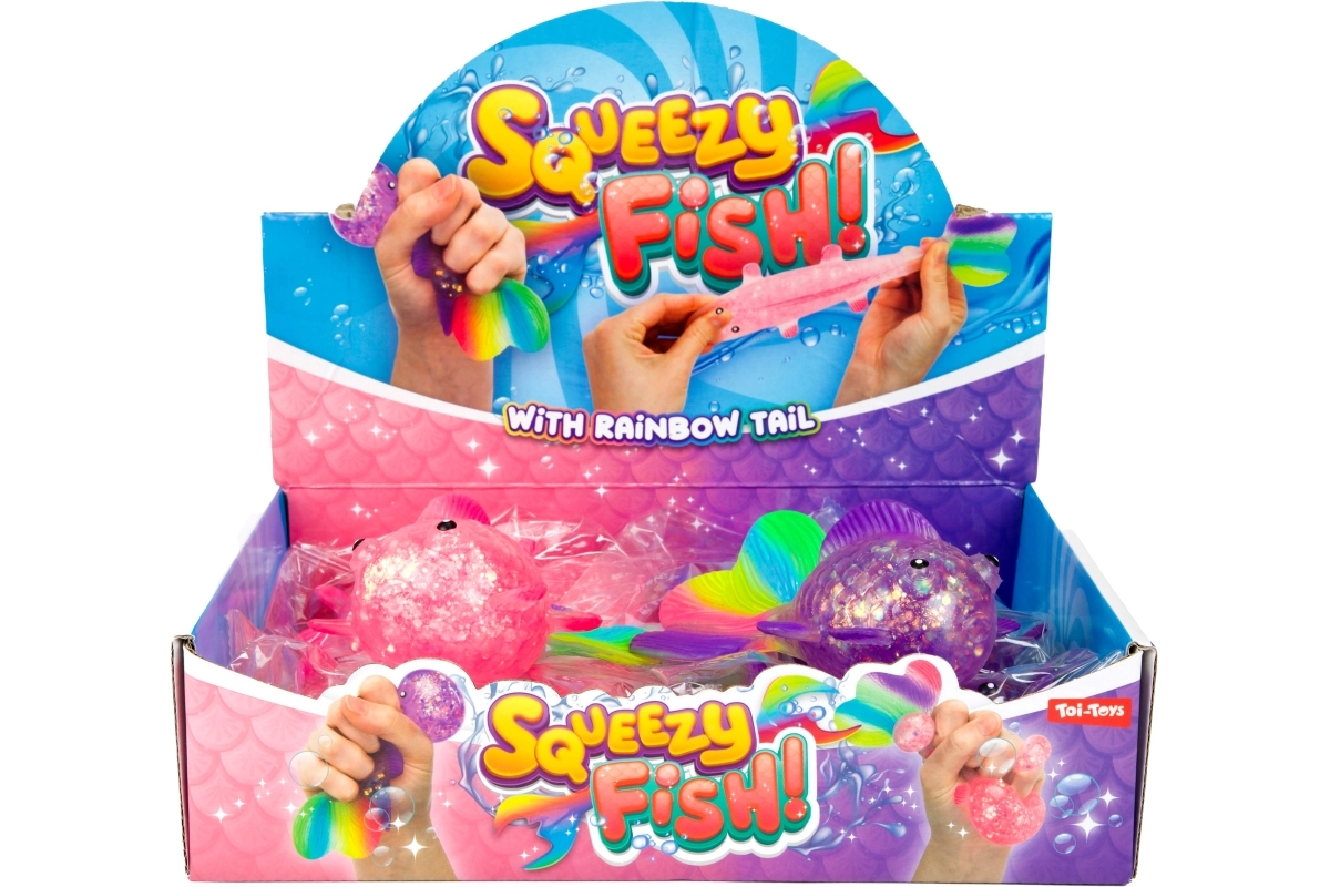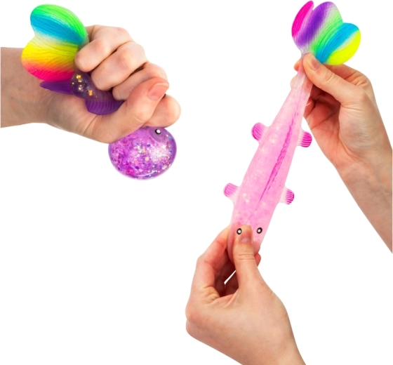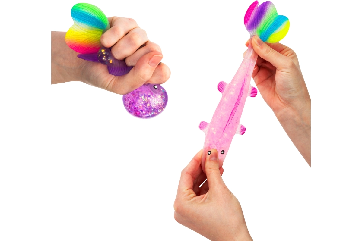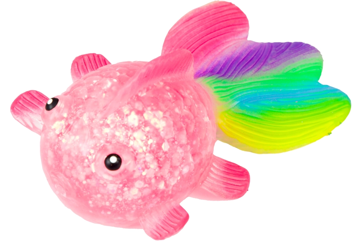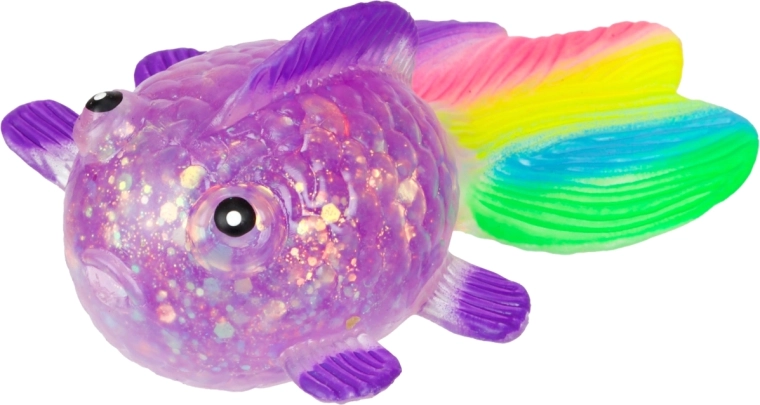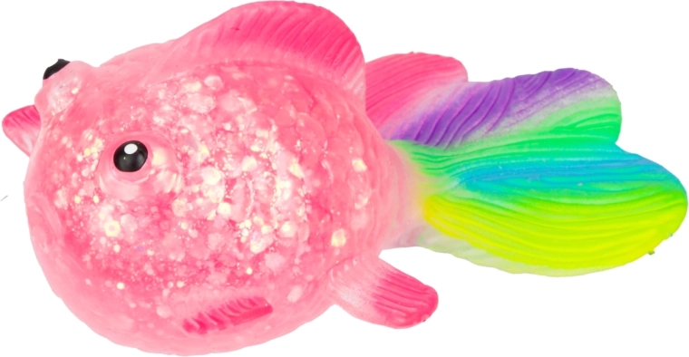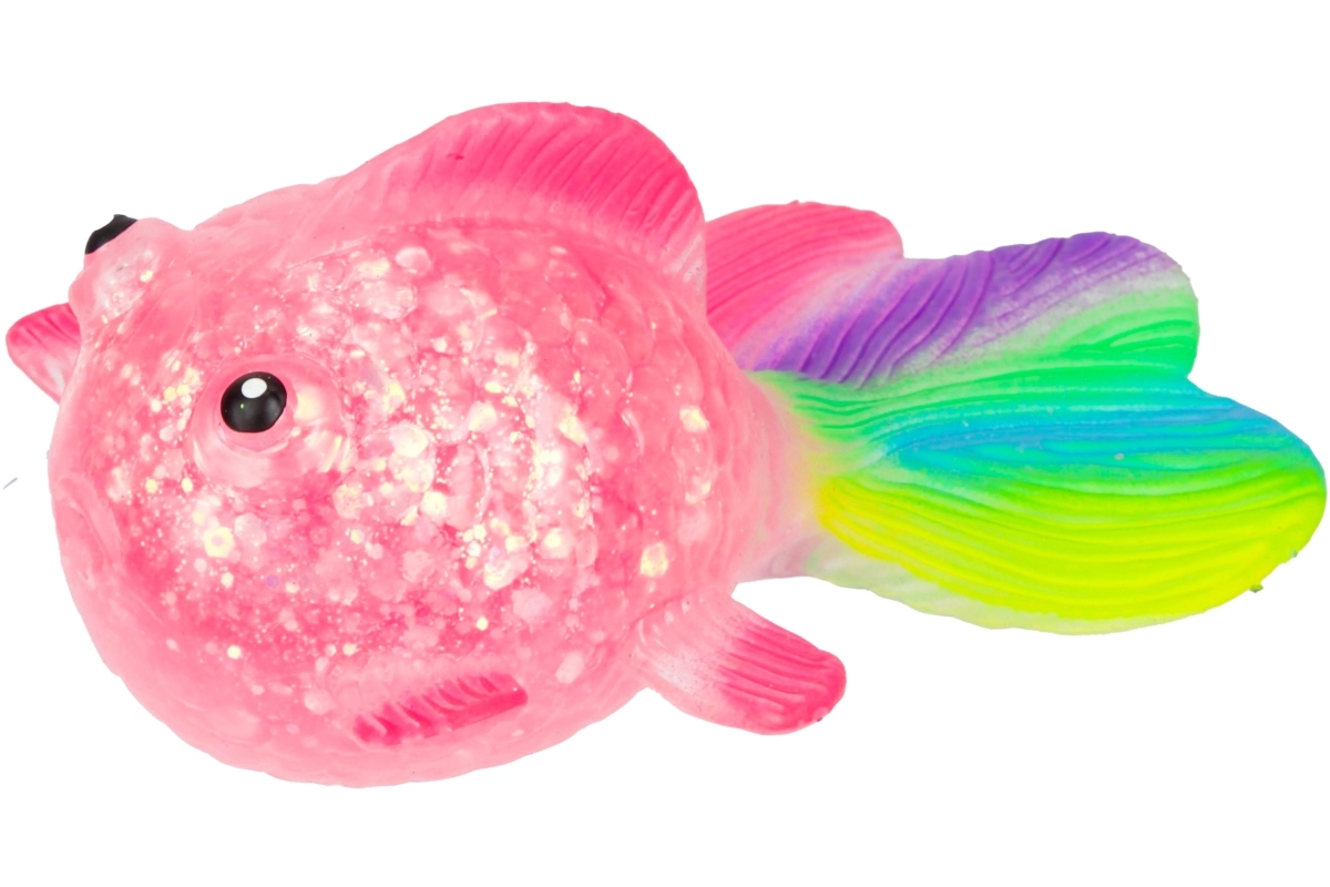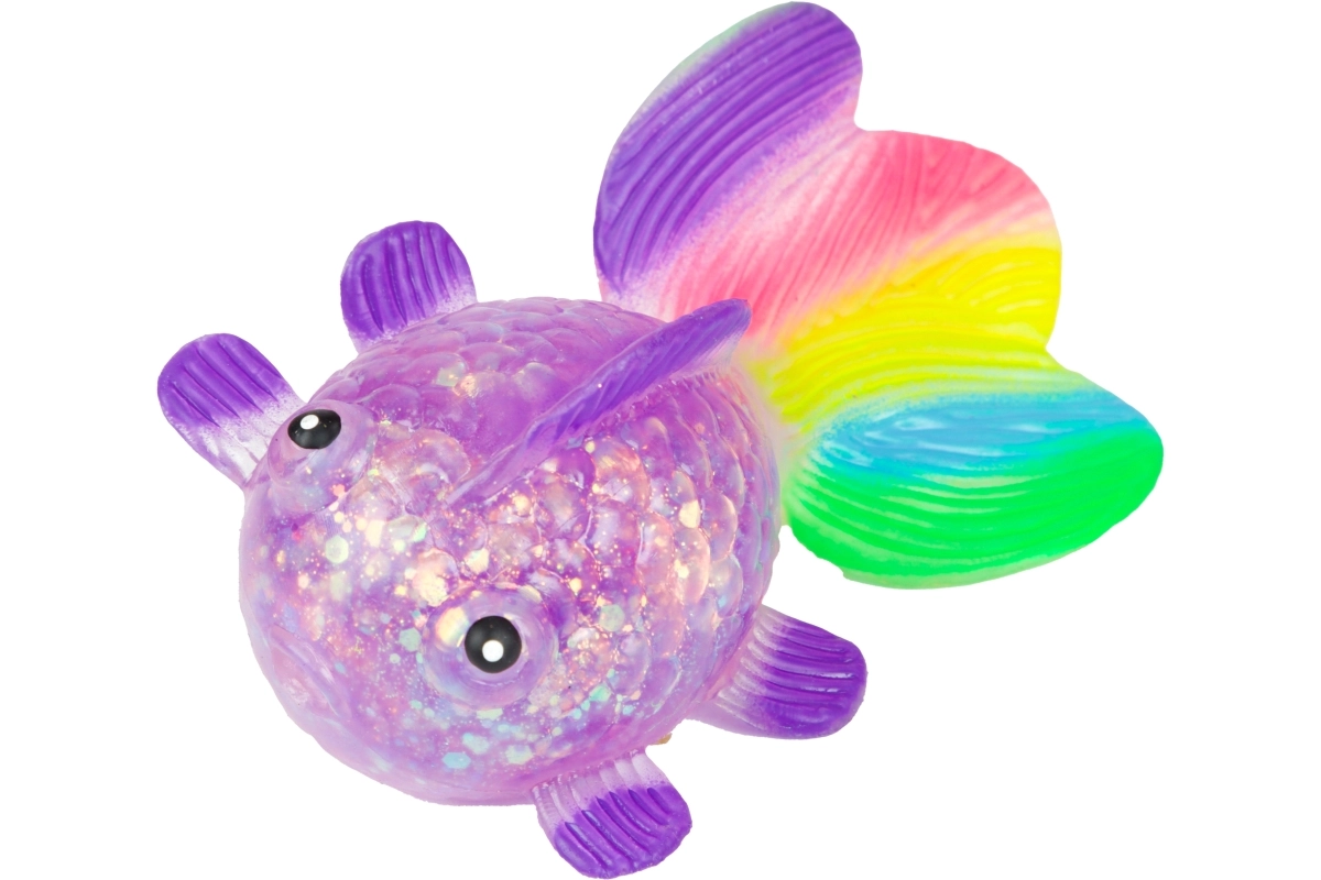 Descoperă senzația liniștitoare a strângerii cu adorabilul peștișor sclipitor, care are corp moale cu gel, efect translucid cu sclipici și înotătoare colorată. Datorită dimensiunii compacte de 12×7×4,5 cm stă confortabil în palmă și este ideal pentru momente de calm acasă, la școală sau la birou.