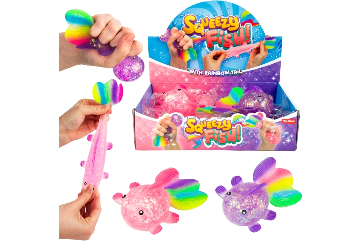 Jucărie antistres distractivă pentru copii și adulți: peștișor sclipitor de strâns cu umplutură gel, textură fină și înotătoare curcubeu. Se potrivește perfect în mână, oferă stimulare senzorială și ajută la eliberarea tensiunii. Disponibil în culori diverse, livrăm în funcție de stocul disponibil.