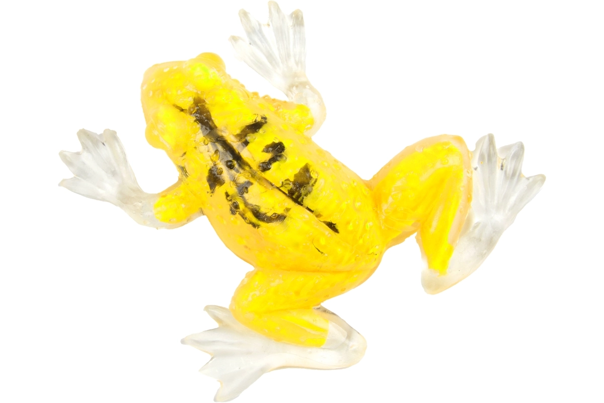 Această broască de cauciuc elastică îi va încânta pe mici și mari. Datorită materialului moale și extensibil, este ideală pentru joc tactil și senzorial, dezvoltă motricitatea fină și oferă totodată un efect antistres liniștitor. Detaliile realiste, labele membranoase translucide și culorile vii o transformă într-un accesoriu atrăgător pentru camera copilului.