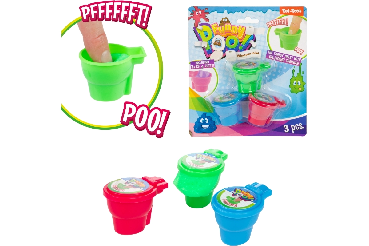 Pastă pârâitoare distractivă în ambalaj mini cu motiv de toaletă, care îi va încânta atât pe copii, cât și pe adulți. În set găsești 3 slimes colorate care, la apăsare, emit sunete amuzante. Ideală pentru petreceri, mic cadou sau pentru a anima timpul liber. Execuție sigură și dimensiuni compacte pentru transport ușor.