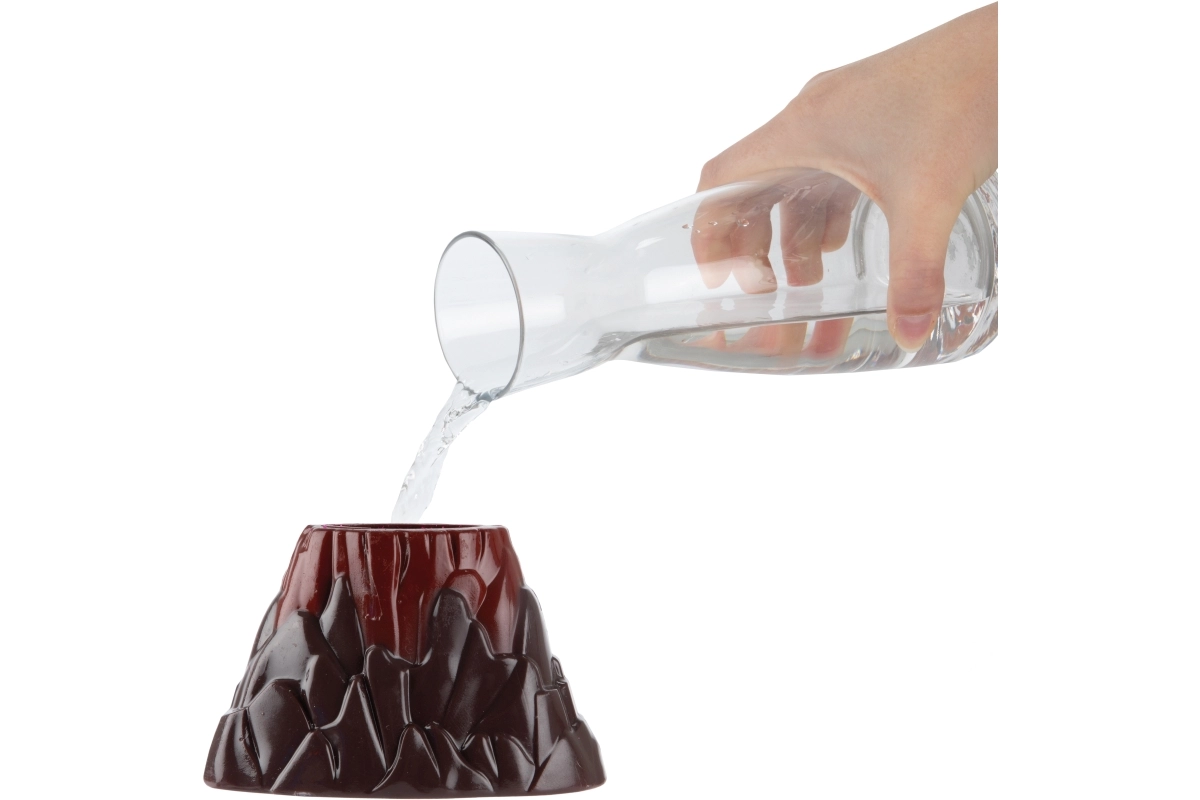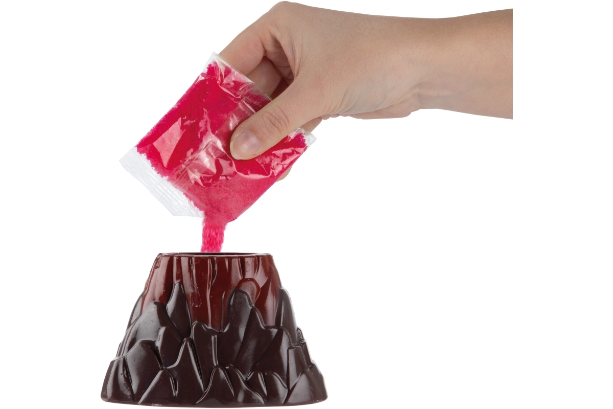 - Toarnă întregul plic în vulcan, adaugă apă până la margine, urmărește erupția
