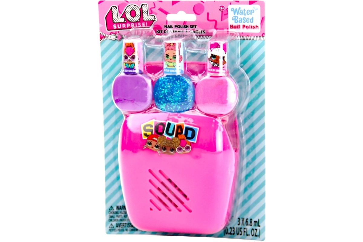 Set de manichiură stilat pentru micile cochete, inspirat de păpușile L.O.L.. Conține 3 lacuri de unghii colorate și un uscător cu baterii pentru uscare rapidă (2× AA, nu sunt incluse). Ideal pentru decorarea creativă a unghiilor și primele încercări cosmetice.