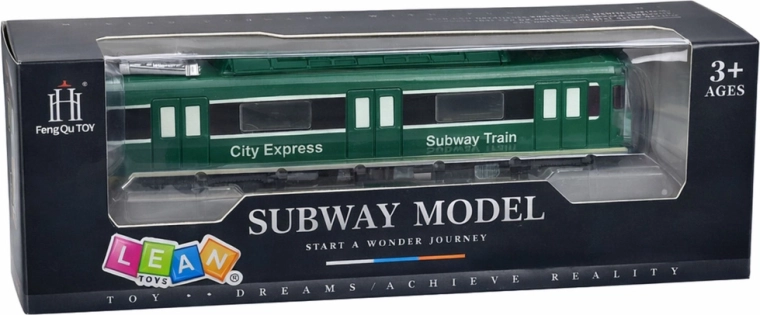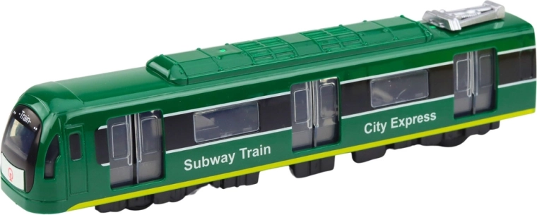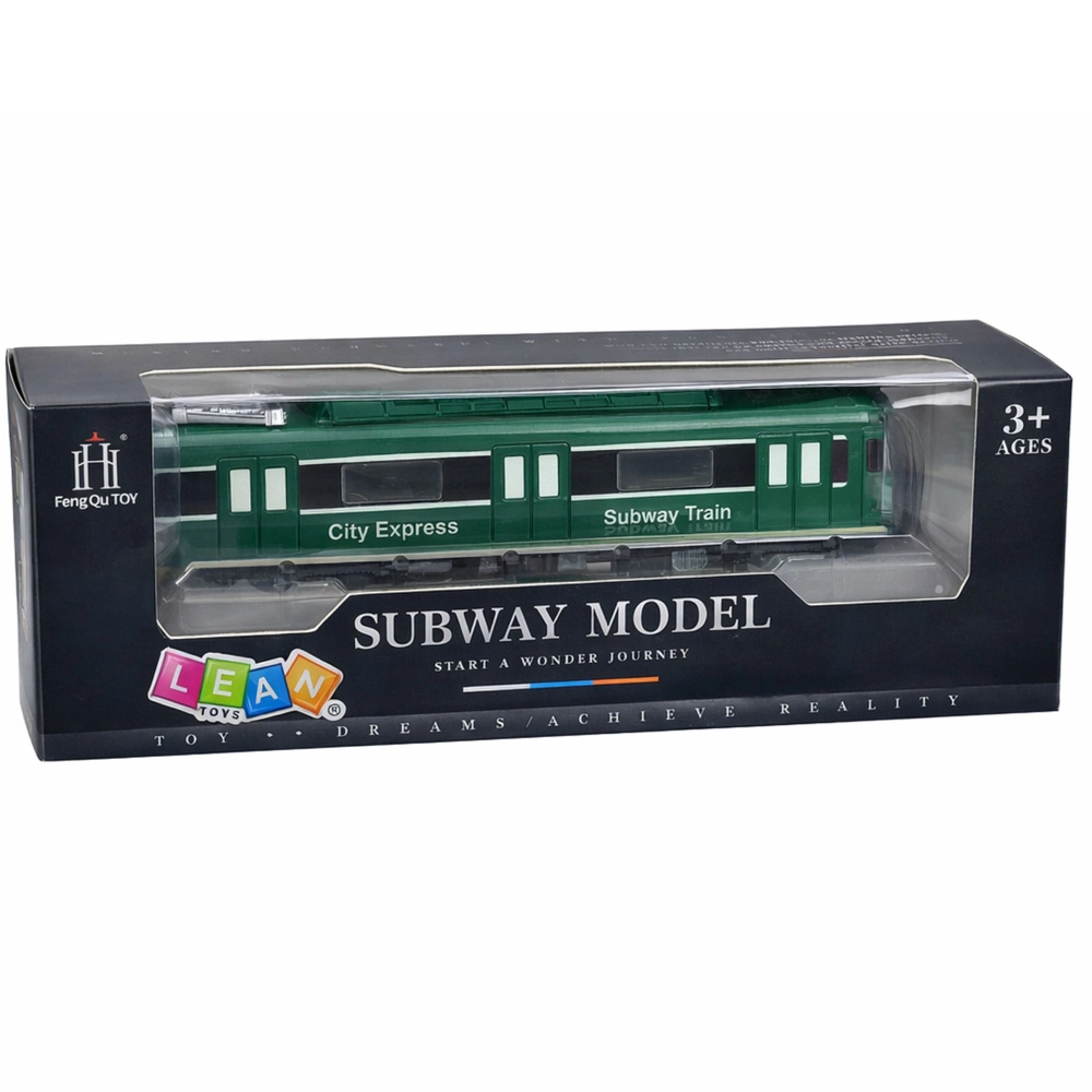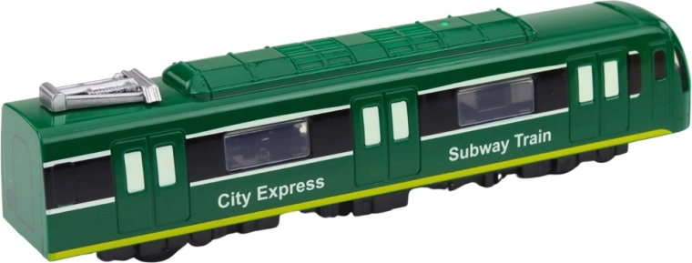 Descoperiți trenul de metrou verde CITY EXPRESS, realizat cu atenție la detalii, cu inscripțiile Subway Train și City Express. Datorită detaliilor realiste ale ferestrelor, ușilor și acoperișului, are un aspect modern și autentic. Luminile și sunetele integrate aduc în joc atmosfera transportului urban real.