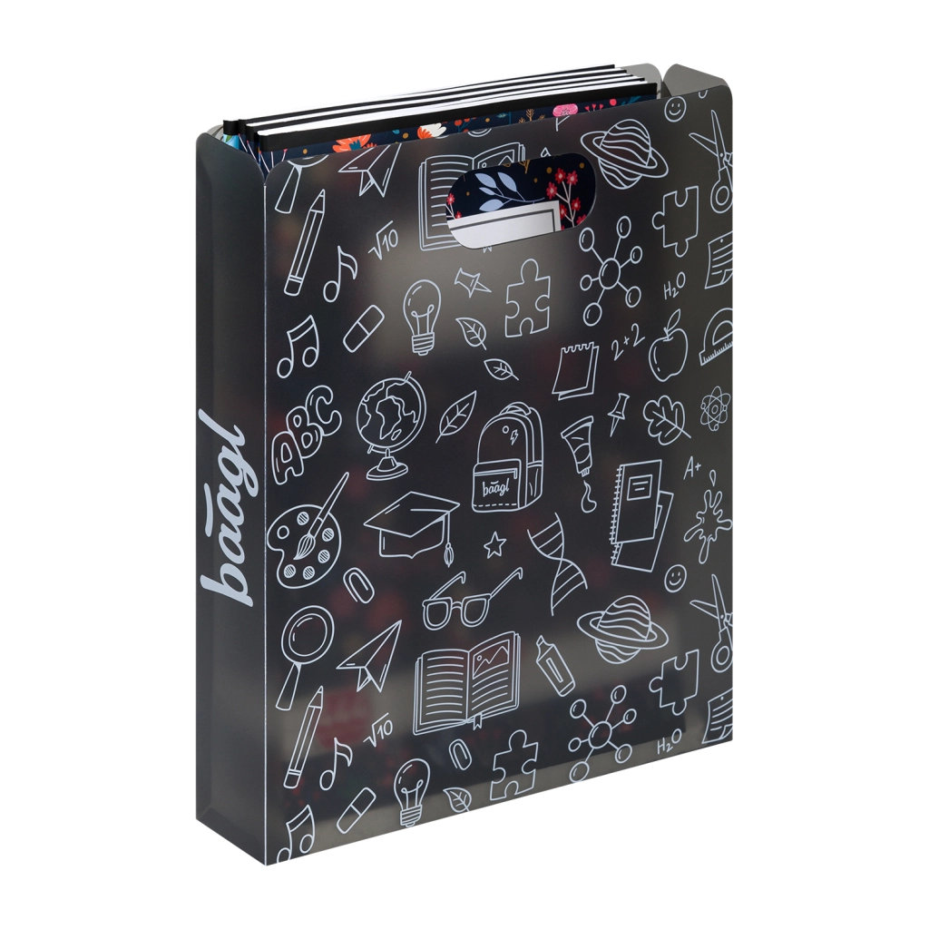 Ușoare și rezistente, mapele din plastic pentru caiete școlare de la Baagl, realizate din polipropilenă 100% reciclată, păstrează manualele, caietele și fișele de lucru în siguranță, laolaltă. Datorită dimensiunilor compacte, greutății sub 140 g și mânerului practic, sunt ideale pentru utilizarea zilnică la școală și acasă. Construcția robustă protejează împotriva îndoiri colțurilor și a umidității, iar materialul translucid permite orientarea rapidă în conținut.
