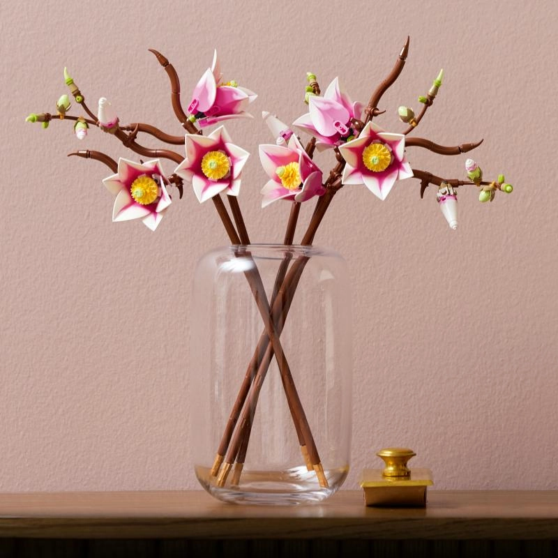 Acest set de design din colecția LEGO Botanicals îi va încânta pe iubitorii naturii și ai interioarelor moderne. Cele cinci crenguțe de magnolie trec de la boboci mici la flori complet deschise, ce pot fi aranjate într-o vază și expuse ca o decorațiune florală de lungă durată, fără întreținere. Două nuanțe de petale oferă florilor textură și profunzime credibile.