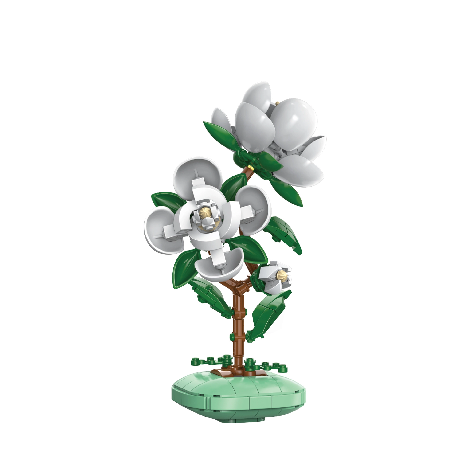 Aduceți în interior o notă de natură fără udat. Acest model decorativ din cărămizi CaDA vă permite să construiți o camelie elegantă în ghiveci cu înălțimea de aproximativ 23 cm. Setul cu 301 piese oferă o construcție creativă și relaxantă, flori albe realiste, frunze verzi și o bază stabilă – ideal ca decorațiune stilată pentru birou, poliță sau biroul de acasă.