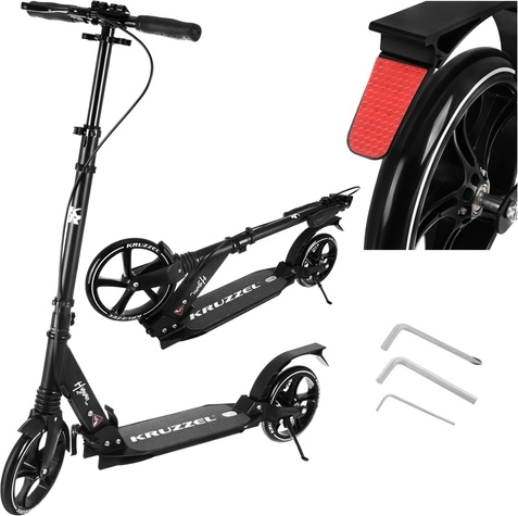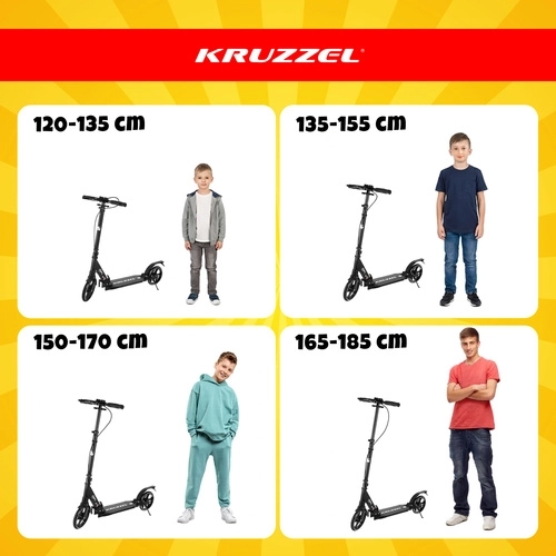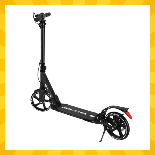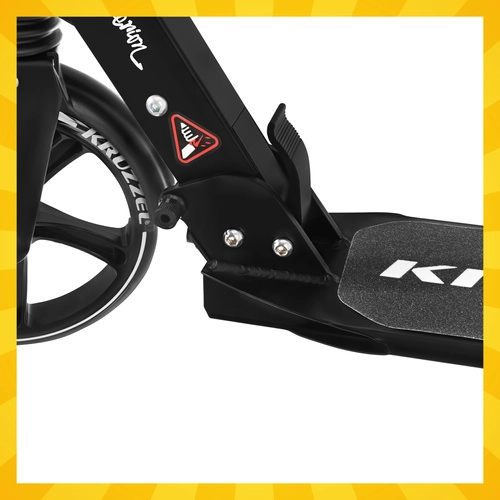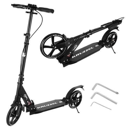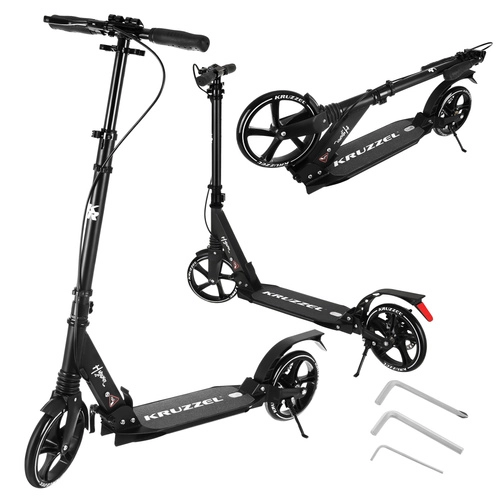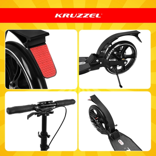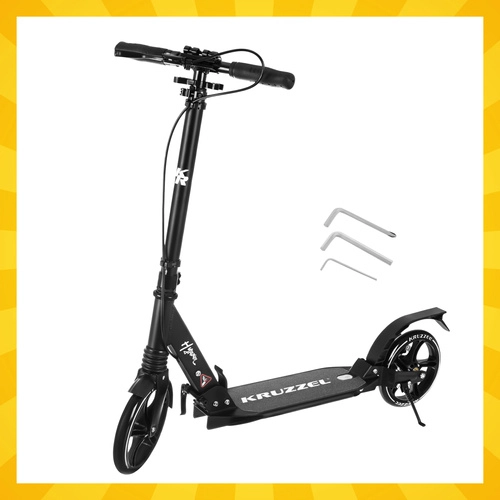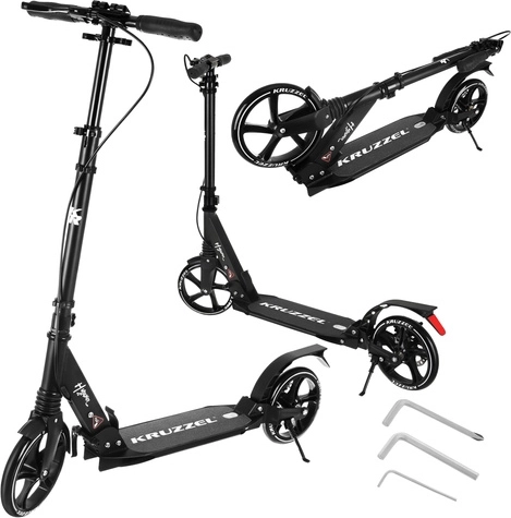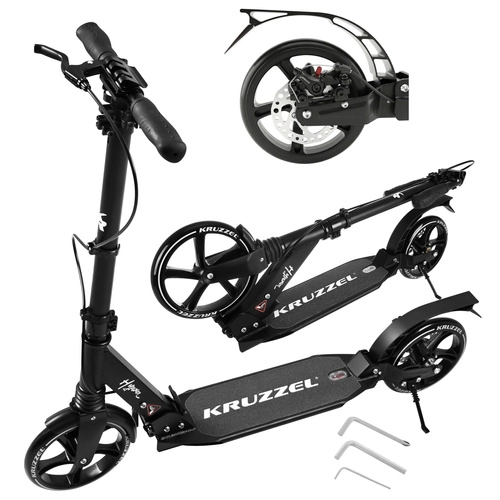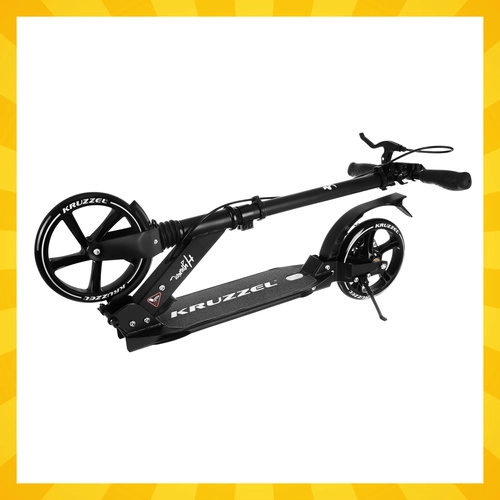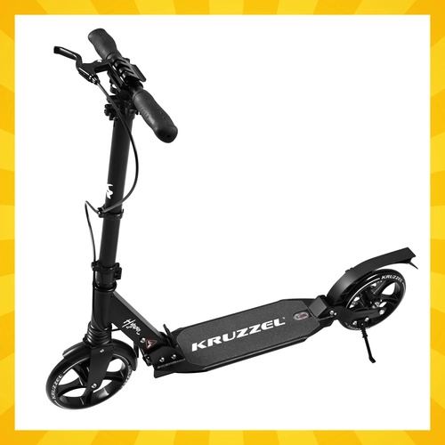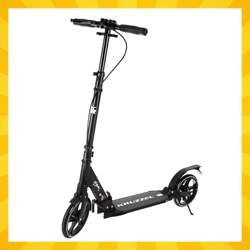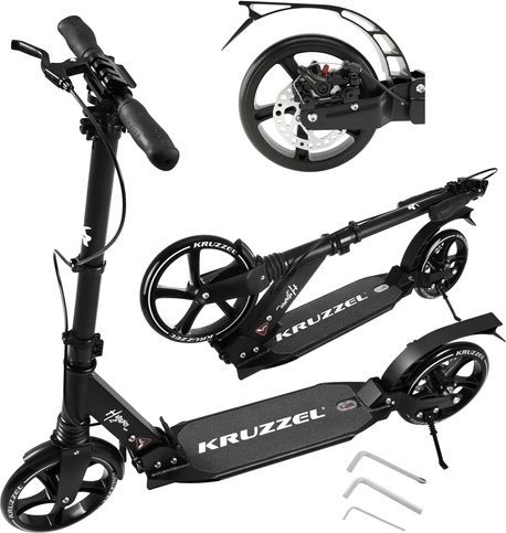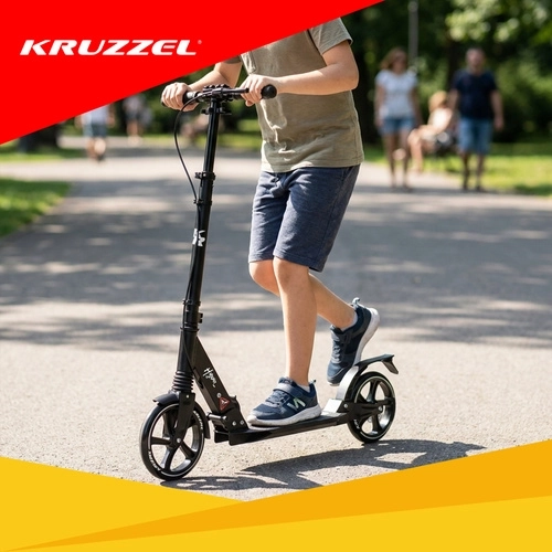 Trotineta ușoară și rezistentă KRUZZEL Hyperion pentru oraș și piste de biciclete combină roți mari din cauciuc de 200 mm, rulmenți fluizi ABEC-9 și sistem dublu de frânare (frână pe disc la mână + frână de picior). Datorită plierii rapide, ghidonului reglabil pe înălțime în 4 trepte și amortizării, oferă confort, siguranță și mobilitate pentru copii de la 10 ani și adulți.