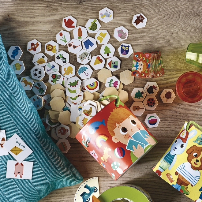 Testați atenția copiilor dumneavoastră cu acest joc distractiv de pexeso. Găsiți imaginea care este aceeași ca pe cartonaș. Piese solide din lemn asigură durabilitatea jucăriei.