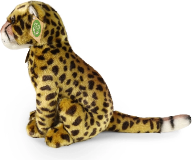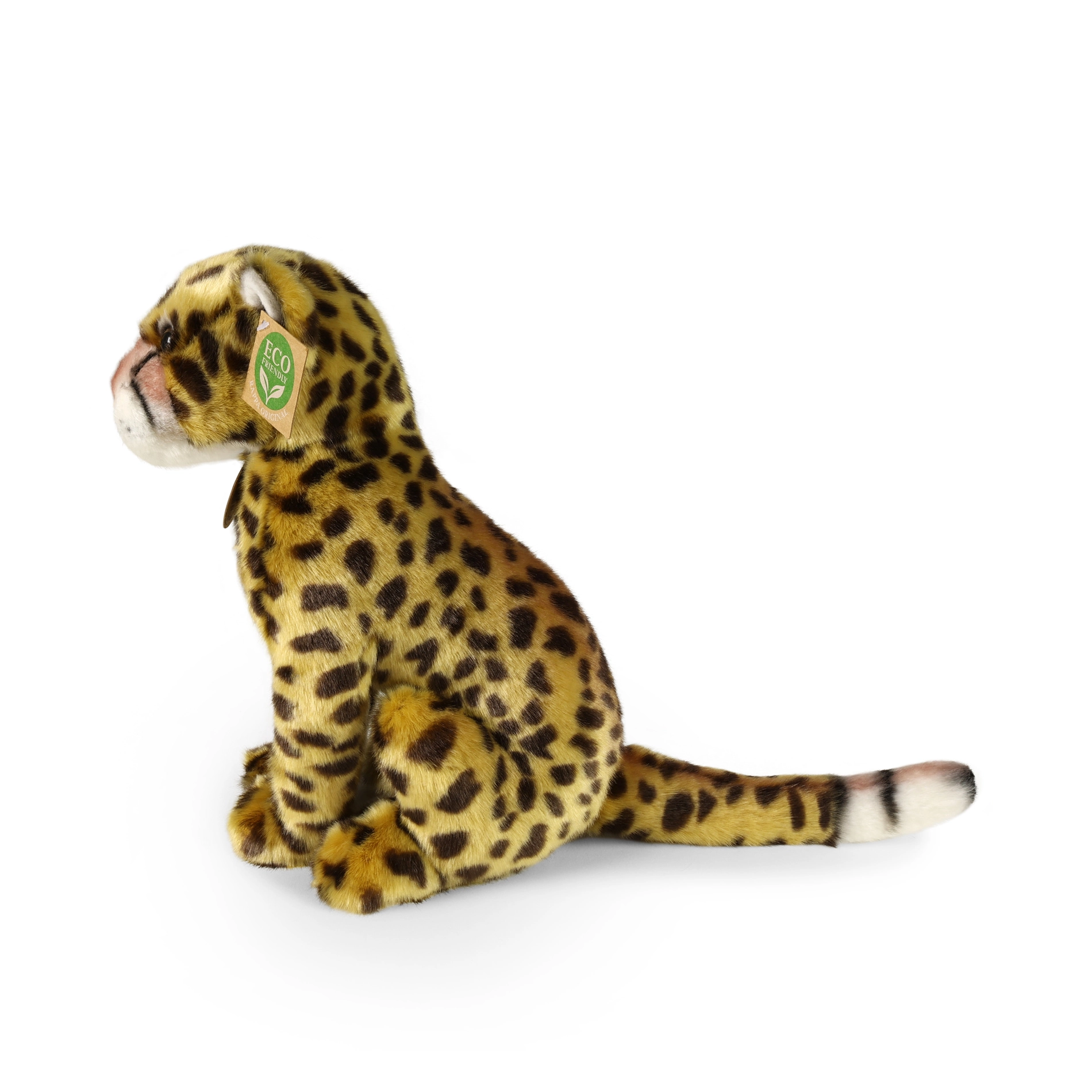 Un ghepard de pluș adorabil, cu înălțimea de 28 cm, din colecția exclusivă RAPPA, este realizat din material moale și catifelat și umplut cu fibre reciclate din sticle PET. Datorită prelucrării manuale, arată realist, este sigur chiar și pentru cei mai mici copii și este perfect pentru îmbrățișat și joacă.