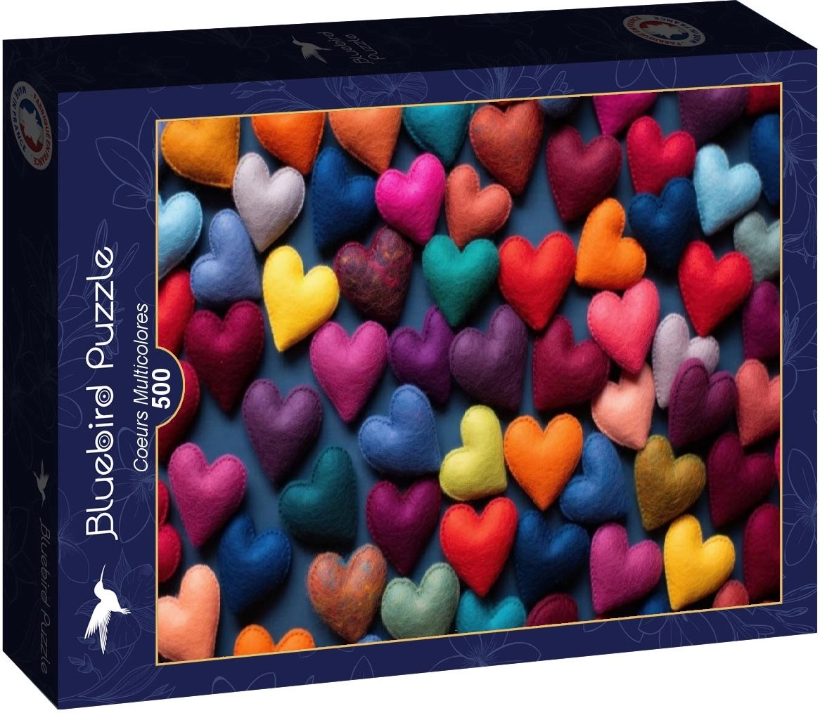 Acest puzzle cu motivul inimilor colorate îi va încânta pe toți iubitorii de relaxare și distracție în familie. Cu cele 500 de piese, oferă o provocare plăcută pentru o după-amiază, iar după asamblare creează o imagine de 47,8 × 34,2 cm, potrivită și pentru înrămat.